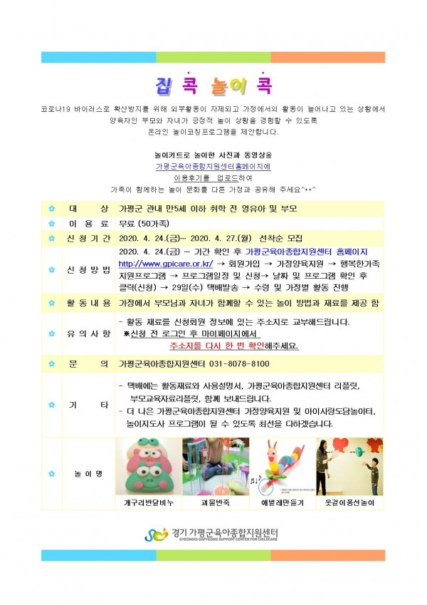 코로나19 극복을 위한 온라인 놀이코칭 프로그램을 제안합니다.