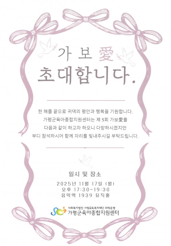 2025 '가.보.愛'(가평군 보육교직원을 애정합니다.) 행사를 개최하오니