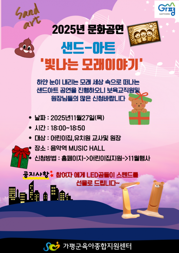 샌드아트-빛나는 모래이야기 문화공연을 진행하오니