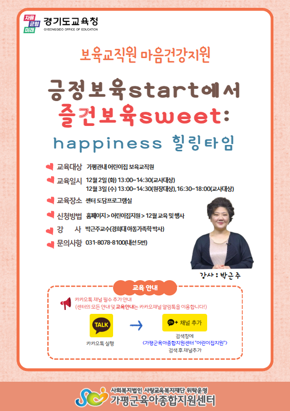 | 장소 | 가평군육아종합지원센터 3층 도담프로그램실 | 대상 | 어린이집 원장대상 |