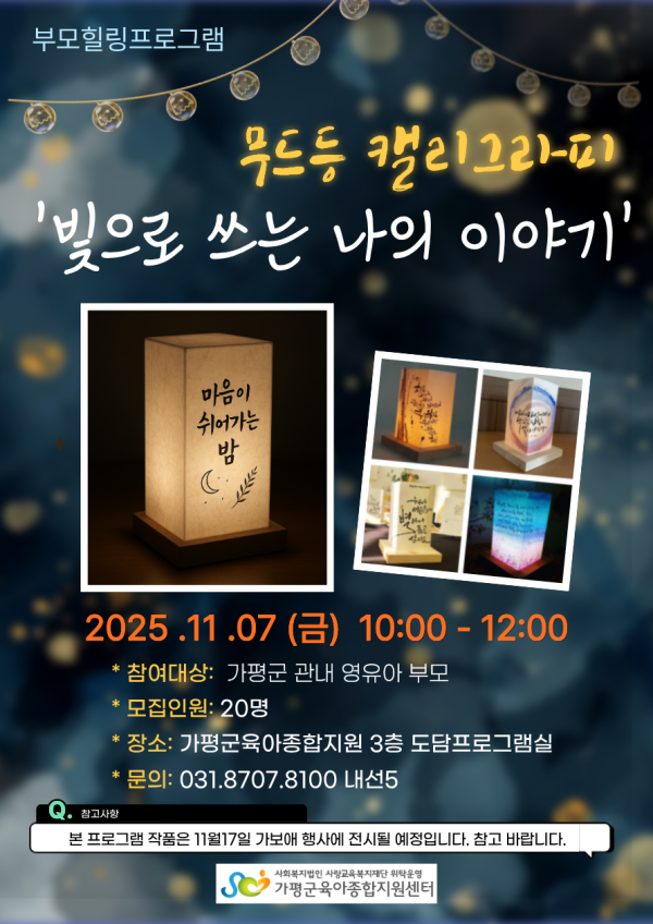 종이 무드등 캘리그라피 활동을 통해 힐링의 시간이 되시기바랍니다.