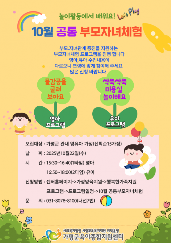 - 다음글공통부모자녀체험-1타임 영아(18개월이상~4세) 25.10.15