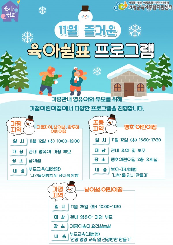 육아쉼표는 가평 관내 영유아와 부모를 위해