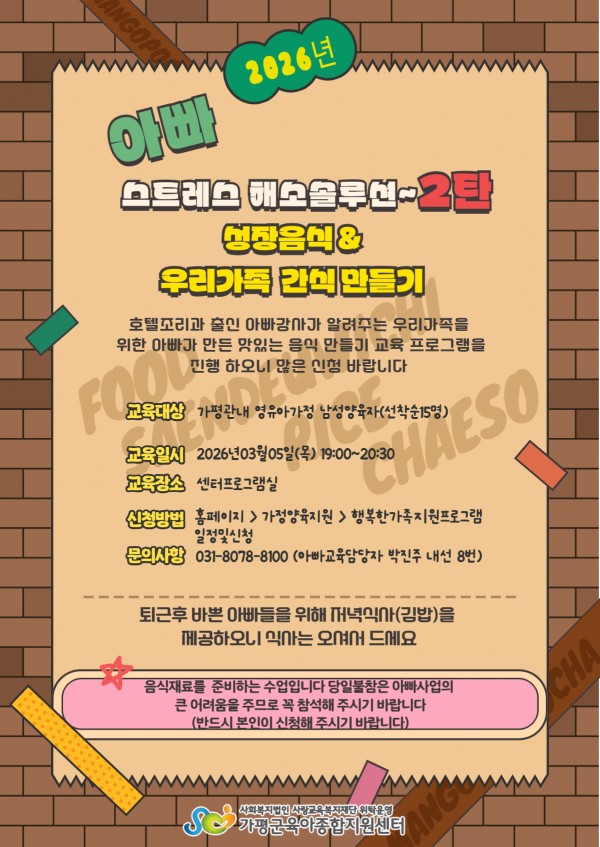 | 장소 | 센터프로그램실 | 대상 | 관내영유아가정 남성양육자 |