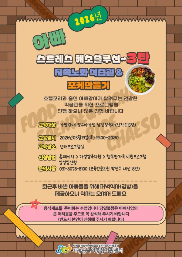 | 장소 | 센터프로그램실 | 대상 | 관내남성양육자 |